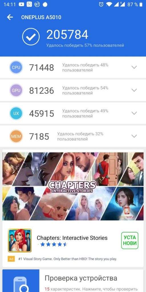 Что касается результатов тестирования Snapdragon 835, то OnePlus 5T на его базе выдал солидные 205 000 с хвостиком, из которых CPU урвал почти 71 500 баллов, а графический блок GPU и вовсе удивил - целых 81 200 баллов.