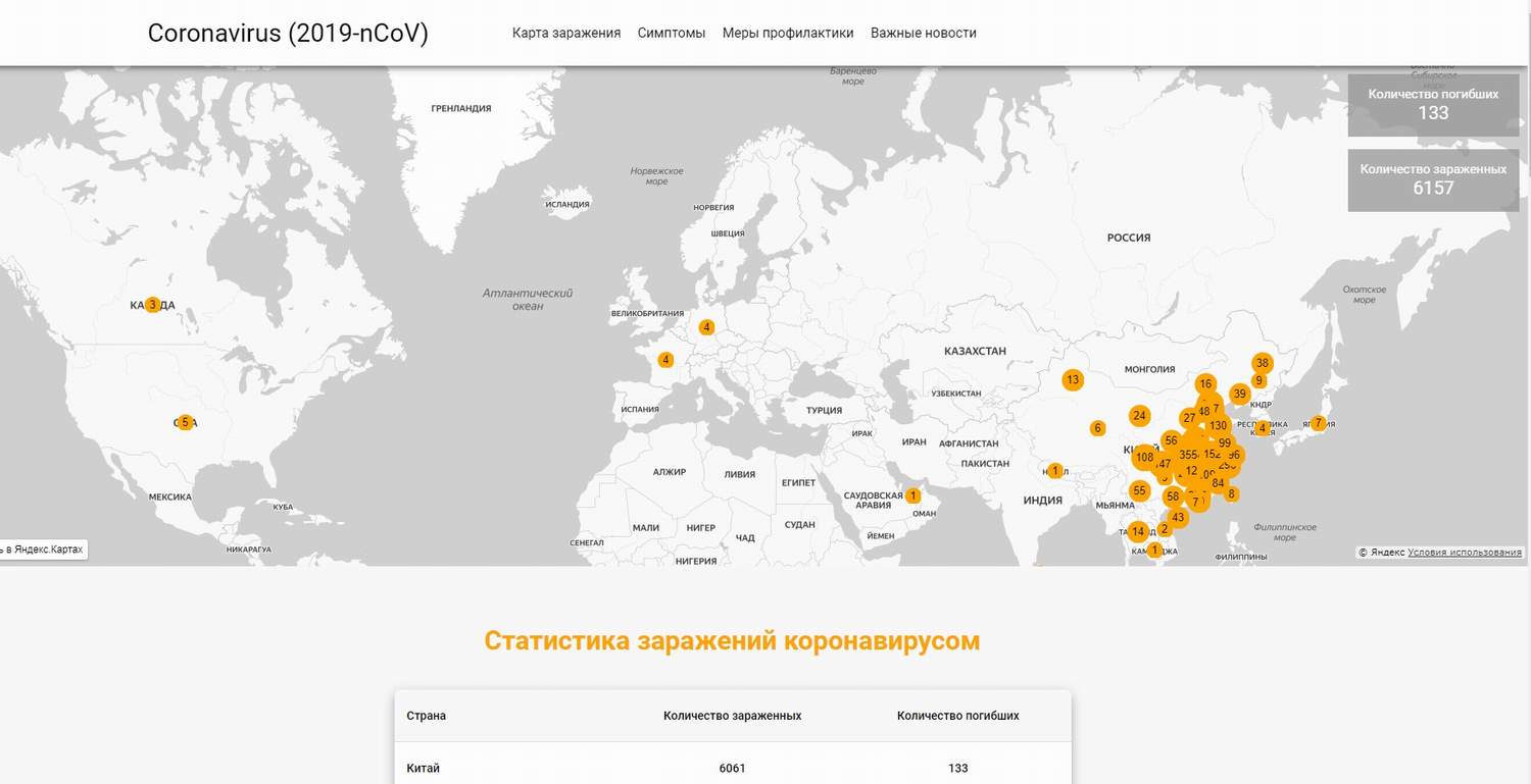 Онлайн-карта распространения коронавируса из Китая